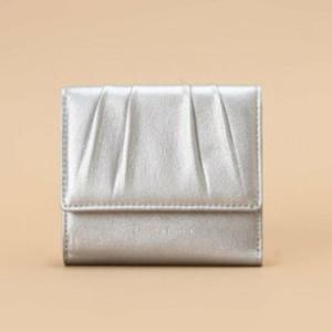送料無料 サマンサタバサ ロゴ入 タック デザイン 牛革 二つ折り財布 折財布 ミニ財布 シルバー 新品 証明書付 包装無料 開運 金運up ユニセックス