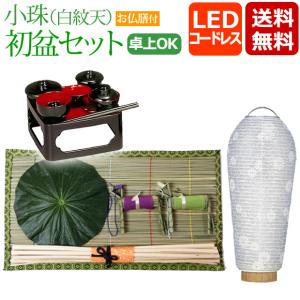 初盆セット 新盆セット ミニ 盆提灯 小珠 白紋天 (お仏膳付き) 盆提灯 初盆飾り 新盆飾り