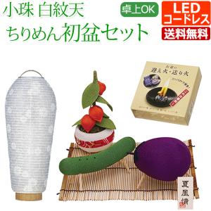 初盆 提灯 新盆セット 小珠 白紋天 ちりめん お盆飾りセット (迎え火・送り火セット付) (T-3) ほうろく ミニ