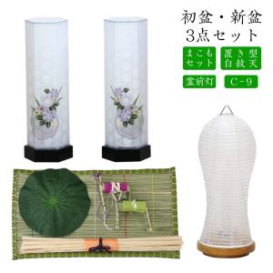 初盆セット 新盆セット 白紋天+盆提灯+まこもセット【初盆・新盆 初盆 3点セット C-9】お盆飾り 初盆飾り 盆提灯 盆ちょうちん 提灯