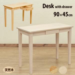 デスク 引出し付き 机 90cm幅 奥行45cm 天然木製 おしゃれ フリーテーブル 事務机 学習机 PCデスク 薄型 コンパクトサイズ