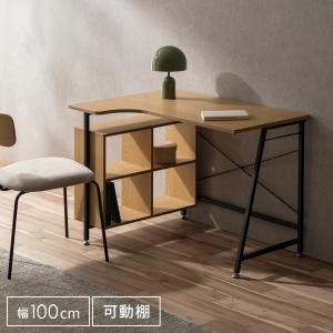 パソコンデスク L字 デスク 机 100cm幅 コンパクト 省スペース おしゃれ 書斎机 ラック付き 北欧 作業机 シンプル コードスリット ワークデスク 棚付き