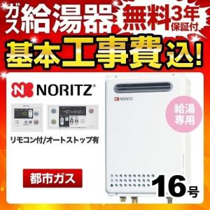 工事費込みセット 【都市ガス】 ガス給湯器 16号 ノーリツ GQ-1639WS-1 13A-15A ユコアGQ WSシリーズ 給湯専用 【給湯専用】 工事費込 リフォーム