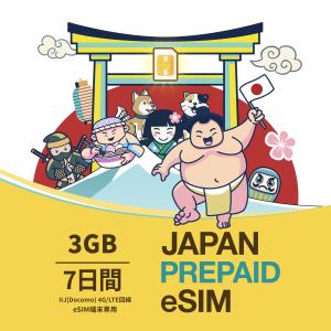 日本プリペイドeSIM 7日間3GB IIJ docomo回線 日本国内専用 4G/LTE対応 データ通信専用 esim対応機種 旅行 一時帰国 格安eSIM