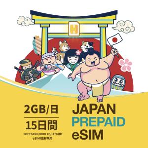 日本プリペイドeSIM 15日間 毎日2GB更新 KDDI/Softbank回線 日本国内専用 4G/LTE対応 データ通信専用 esim対応機種 旅行 一時帰国 格安eSIM