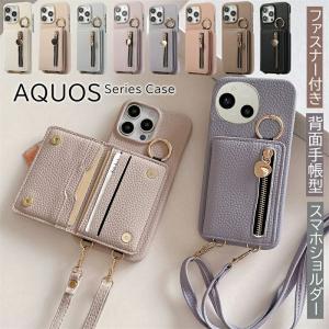 RFID機能/カード入れ/小銭入れ/ストラップ付き AQUOS R10 wish5 wish3 sense8 sense9 sense7 sense6S ケース ショルダー 背面手帳型 ICカード収納 アクオス R9 R