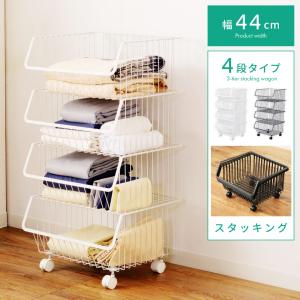 収納ボックス 4段 ワゴン バスケット ラック かご キャスター付き 積み重ね スタッキング おしゃれ 北欧 シンプル ランドリーワゴン ホワイト ブラック 白 黒