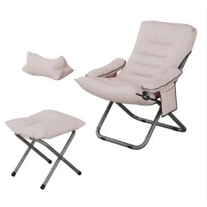 リクライニングチェア 折りたたみ 椅子 ごろ寝 オットマン付 組立簡単 軽量 3段階調節 収納袋付 ダイニング ひじ掛け付 模様替え 家具 空?活用 備品