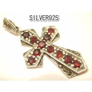横浜最新 シルバーSILVER925銀ペンダント十字架♪魅惑のクロス ガーネット風 8.3g メンズレディース 送料無料ネックレス10syo