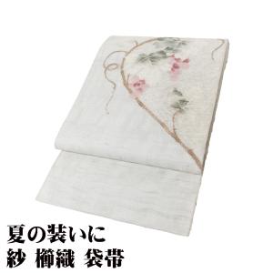 紗 櫛織 袋帯 正絹 水色 白 葡萄 Lサイズ F8025 美品 夏帯 なつおび レディース シルク ギフト 20代 30代 40代 50代 送料込み