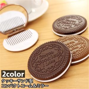 コンパクトコーム 櫛 クシ コンパクトミラー レディース 女性 丸形 ラウンド型 クッキーサンド型 持ち歩き用 かわいい ポップ キュート カジュアル