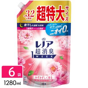 P&G 【数量限定】レノア超消臭 柔軟剤 1week みずみずしく香るフローラルフルーティーソープの香り つめかえ用 超特大サイズ 1280ml×6袋 4987176217509