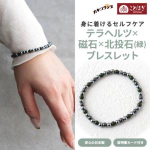 ことほぎ KOTOHOGI カタコランヌ プレミアム テラヘルツ×北投石(緑)×磁石 磁気ブレスレット 内周約15cm KB0096
