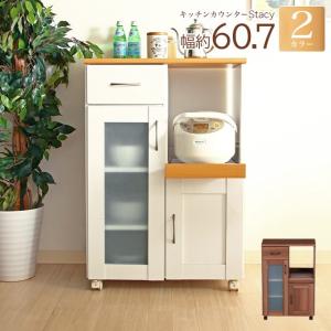キッチンカウンター 食器棚 キッチンワゴン 炊飯器台 幅60cm おしゃれ 下収納 スリム コンパクト ロータイプ キャスター付き 人気 アウトレット価格
