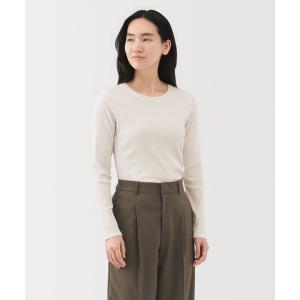 tシャツ 婦人 なめらかリブ編みクルーネック長袖Tシャツ レディース