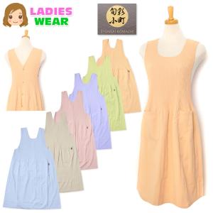送料無料 婦人 レディース ワッシャー エプロン プリーツ加工 後ろボタン留め ポケット付き 軽量 無地 yg-2846 メール便対応