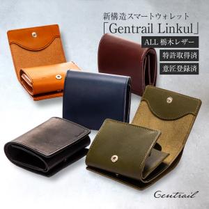 ミニ財布 メンズ 栃木レザー スマートウォレット 牛革 ギフト Gentrail Linkul 特許取得 ミニマル ボックス型小銭入れ ベジタブルタンニンレザー オールレザー