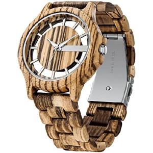 【並行輸入品】 Tiong カラフルな木製腕時計 メンズ スケルトンダイヤル フルウッドクォーツウォッチ 木製ストラップウォッチ 男性用, WD0213-ブラウン,