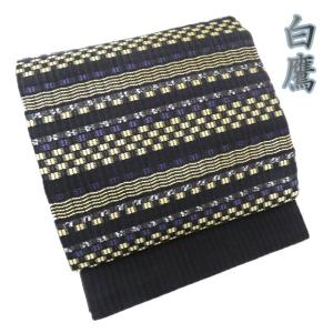 ★きもの北條★ 特選 紬地 白鷹 雪花織 洗練された織りの美 黒色 白茶色 深紫色 開き名古屋帯 A821-17【中古】