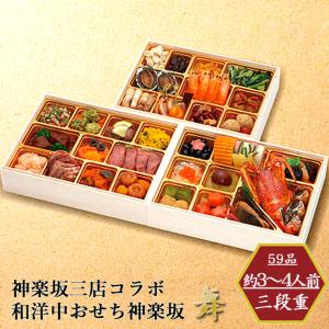 おせち 2026 お取寄 神楽坂三店コラボ 和洋中おせち神楽坂「舞」三段重 3人前 (お届け日:12/29) 送料無料【 お節 御節 おせち料理 _ s25wg _
