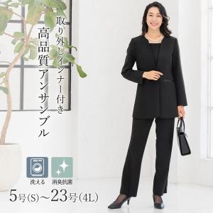 喪服 礼服 洗える!ミセスにうれしいスーツセット 3点セット M L LL 3L フォーマルスーツ レディース 婦人服 シニア ブラックフォーマル 春夏秋冬 fri p20854