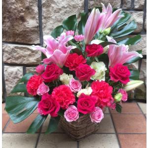【開店祝い・開業祝い】花キューピット 開設 移転 引越 記念日 花 ギフト お祝い プレゼント ユリとピンクバラのアレンジメント