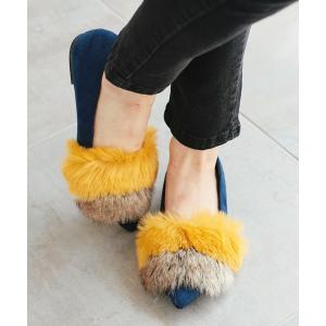 パンプス バイカラーエコファーポインテッドトゥパンプス/フラットシューズ/レディース/神戸レタス[I1188]