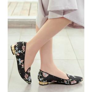 パンプス フラワーカットヒールオペラパンプス/ぺたんこ靴/レディースシューズ「I1458」神戸レタス レディース