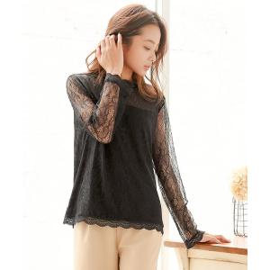 シャツ ブラウス ストライプ&フラワーレースプチハイネックブラウストップス*レディース[C3387]神戸レタス