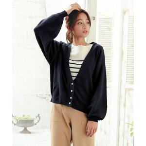 カーディガン バルーンスリーブVネックショート丈ニットカーディガン*アウター/トップス/レディース[C3362]神戸レタス