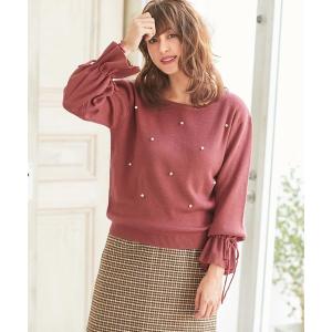 ニット 袖リボンパールニットトップス*レディース/セーター[C3508]神戸レタス