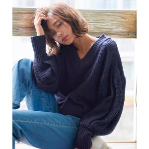 ニット ワッフル編みVネックバルーン袖ニットトップス*レディース/セーター「C3536」神戸レタス レディース