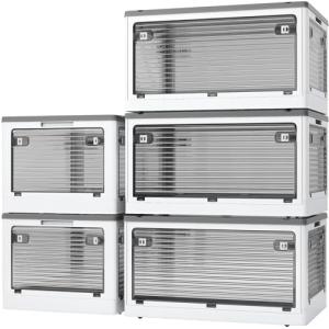 収納ケース 5個セット 折りたたみ コンテナボックス キャスター付き キャビネット 前開き 積み重ね 透明 収納ボックス 大容量 送料無料 ###ラック9016-5-WH###