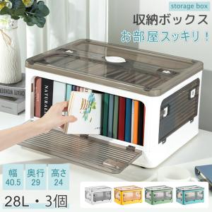 \11%OFFセール/ AZMKOO 収納ボックス 収納ケース コンテナボックス 衣装ケース 折りたたみ 3個セット 28L Sサイズ 高さ24cm 衣類収納 フタ付 キャスター