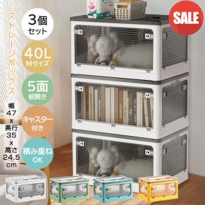 【13%OFFセール】 収納ボックス 収納ケース コンテナボックス 衣装ケース カラーボックス 3個セ ット 40L M おしゃれ 衣類収納 折りたたみ フタ キャスター付
