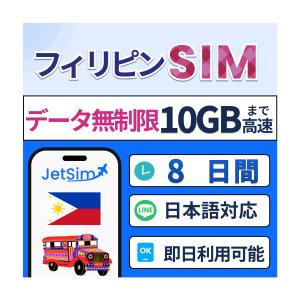 【フィリピンeSIM】8日間 高速データ 10GB 最短即日発行 簡単設定 テザリング対応 5G/4G-LTE