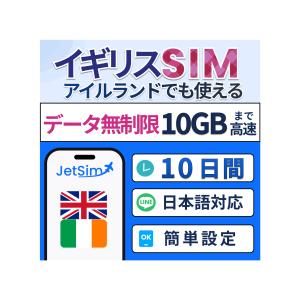 【イギリス・アイルランドeSIM】10日間 高速データ 10GB 最短即日発行 簡単設定 テザリング対応 5G/4G-LTE