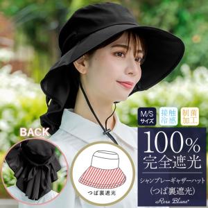 100%遮光 帽子 レディース シャンブレーギャザーハット つば広 UVカット おしゃれ 通気性あり 接触冷感 制菌