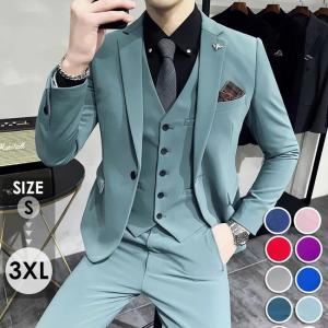 スーツ メンズ スリムスーツ 紳士服 3ピース スリーピース パンツ ベスト 1つボタン 細身 おしゃれ セットアップ フォーマル 背広 長袖 カジュアル 無地シングル