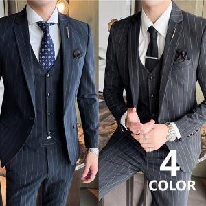 スーツセットアップメンズフォーマルストライプ3点セットビジネススーツスーツビジネススリーピーススーツ通勤結婚式紳士服