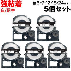 テプラテープ 6mm 9mm 12mm 18mm 24mm 互換 テープ テプラプロ テプラ PRO SS6KW SS9KW SS12KW SS18KW SS24KW 5幅セット 白 ラベル 黒 文字 キングジム 用