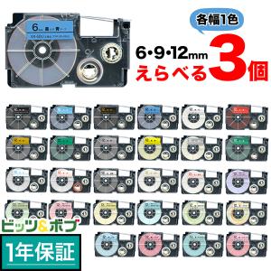 ネームランド テープ 6・9・12mm ラベル 互換 フリーチョイス 全32色 色が選べる3個セット カシオ 用