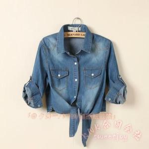 デニムシャツ レディース 羽織り 前結び 半袖/長袖/5分袖 KNK(株) 前縛り ブラウス ショート丈 ロールアップ カジュアル 大きいサイズ 大人 トップス