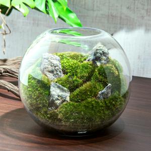 (観葉植物)LED植物育成用ライト付き 苔テラリウム スフィア レイアウト完成品(1個)育て方の説明書付 コケテラリウム 苔テラ コケテラ インテリア