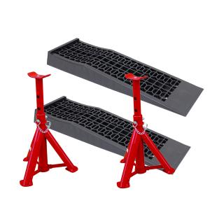 【リニューアル】折りたたみ式3tジャッキスタンド2基&タイヤスロープ2個セット【送料無料】【即納】 ☆2基&タイヤスロープ