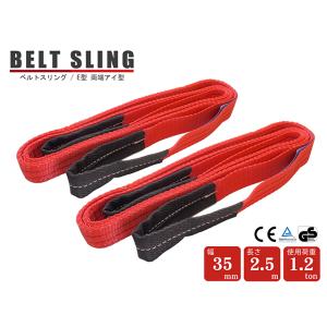 スリングベルト ベルトスリング 玉掛けスリング 2本 ポリエステル製 2.5M 幅35mm 1.2t E型 両端アイ型 赤 レッド ポリエステルスリング ソフトタイプ 荷役作業