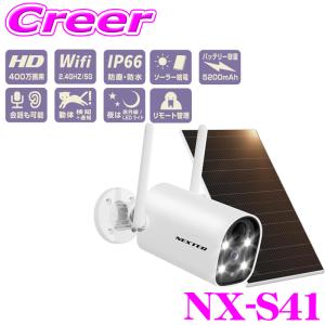 FRC ネットワーク ワイヤレス 防犯カメラ 400万画素 ソーラーパネル搭載 容量:5200mAh 総務省技術基準適合品 ソーラー給電 NX-S41