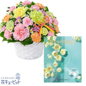 【母の日セットギフト】花キューピット お祝い 感謝 誕生日 カーネーションのミックスアレンジメントと【リンベル】Presentage カタログギフト DUO