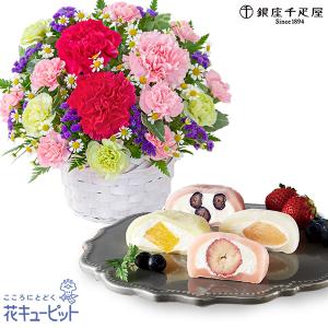 【母の日セットギフト】花キューピット お祝い 感謝 誕生日 華やかなアレンジメントと【銀座千疋屋】銀座フルーツ大福 8個入