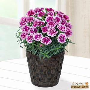 【母の日 産直花鉢植え】花キューピット【日付指定可】 母 祖母 プレゼント 母の日 複色カーネーションの鉢植え(紫)